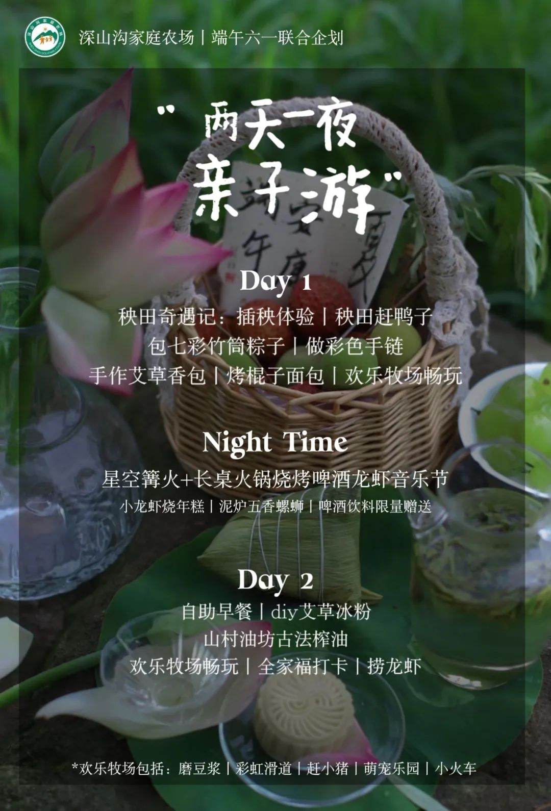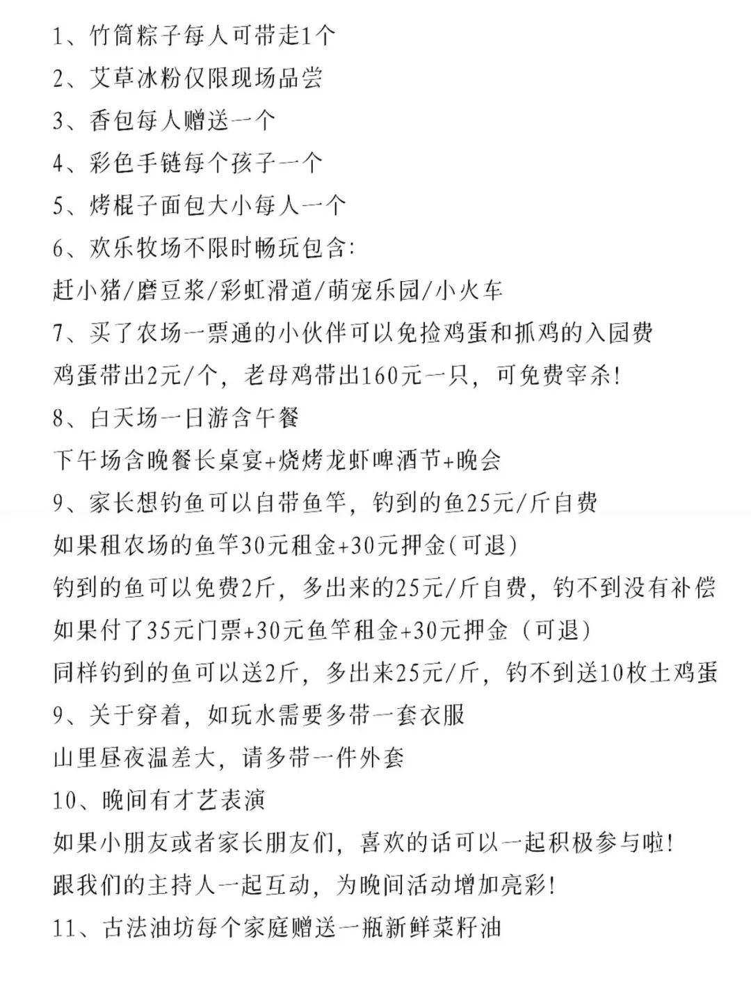 预计11:30到达农场,正式开启两天一晚的亲子遛娃活动,详见活动介绍