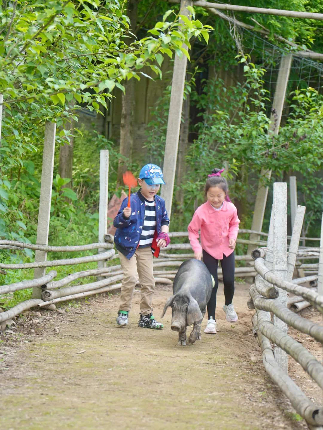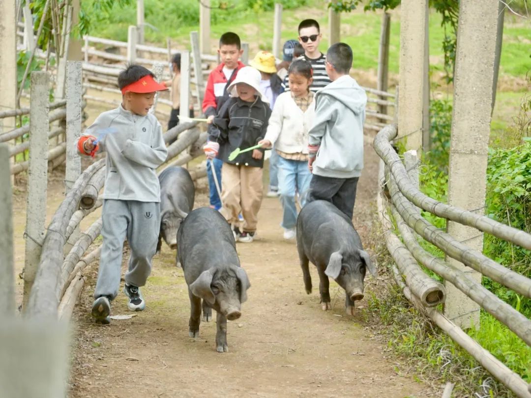 「小猪快跑」哨声响起,萌娃变身赶猪能手!