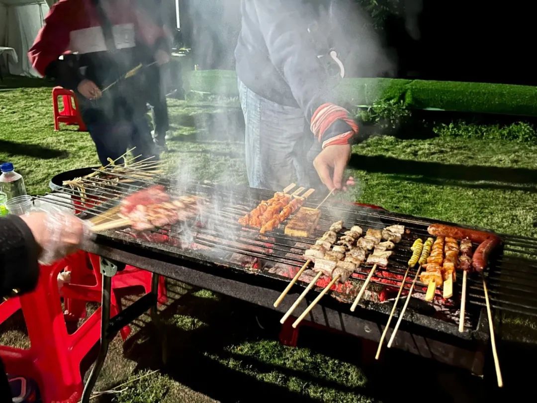 夜幕降临,农场帐篷旁的草地上,烤肉啤酒音乐节来咯!