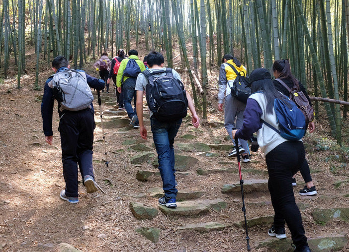 14:00左右,一路沿着山脊线下撤,穿越来到 4A级【宜兴大竹海】景区内,有体力的还可以去冲顶下景区内的苏南第一峰。适时,我们会沿着景区游步道穿过【太湖第一源】【镜湖】。